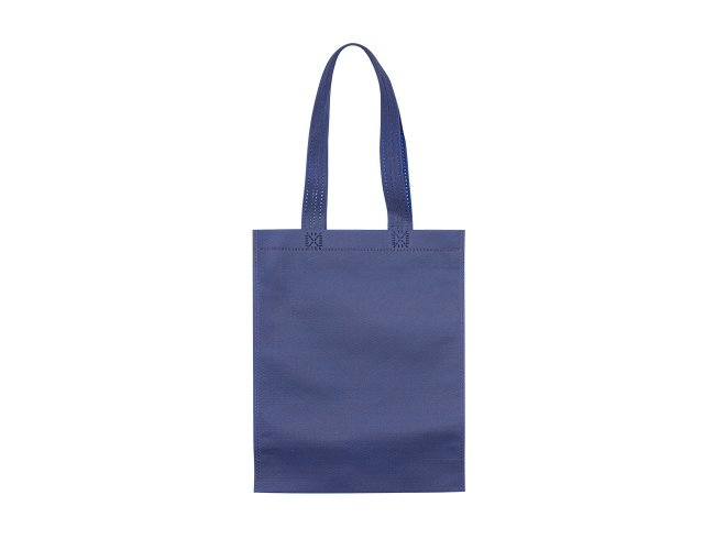 Sacola dobrável em non-woven (80 g/m²) com alças de 65 cm. Fornecida desdobrada. Dobrado: 200 x 120 mm